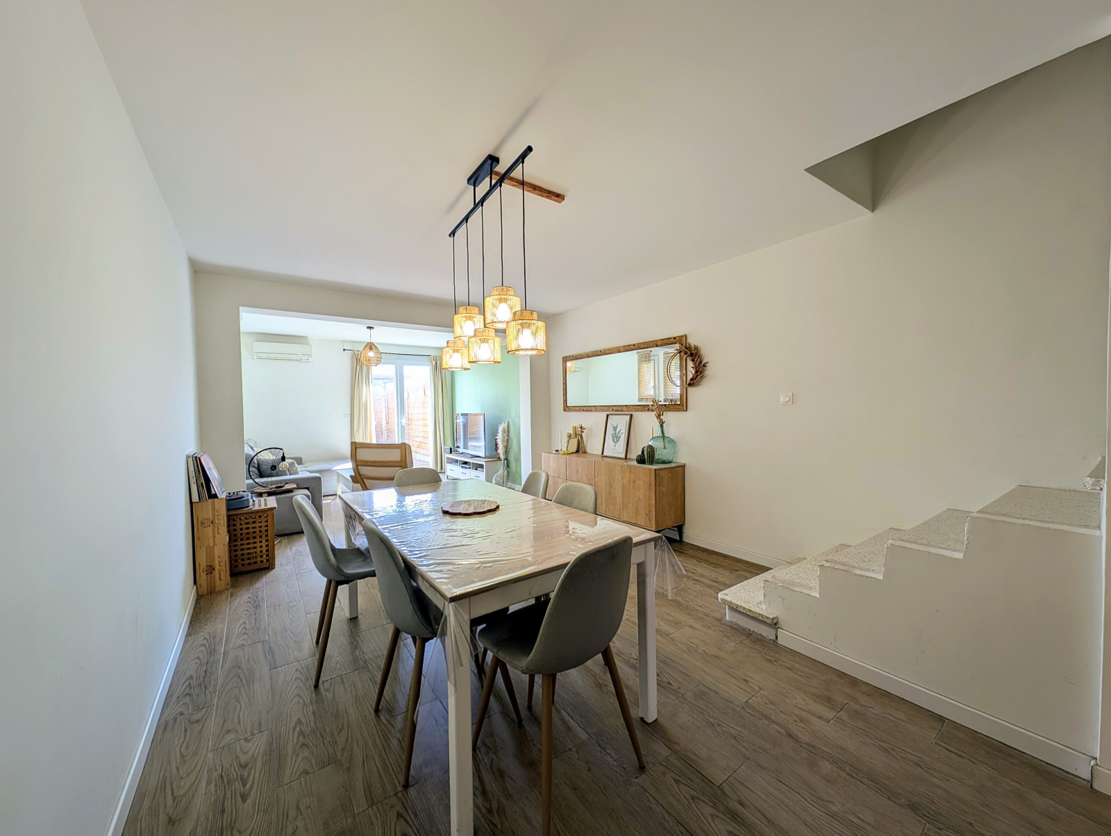 Confort assuré avec la climatisation au rez-de-chaussée et dans la grande chambre, menuiseries PVC double vitrage, et une rénovation contemporaine.
